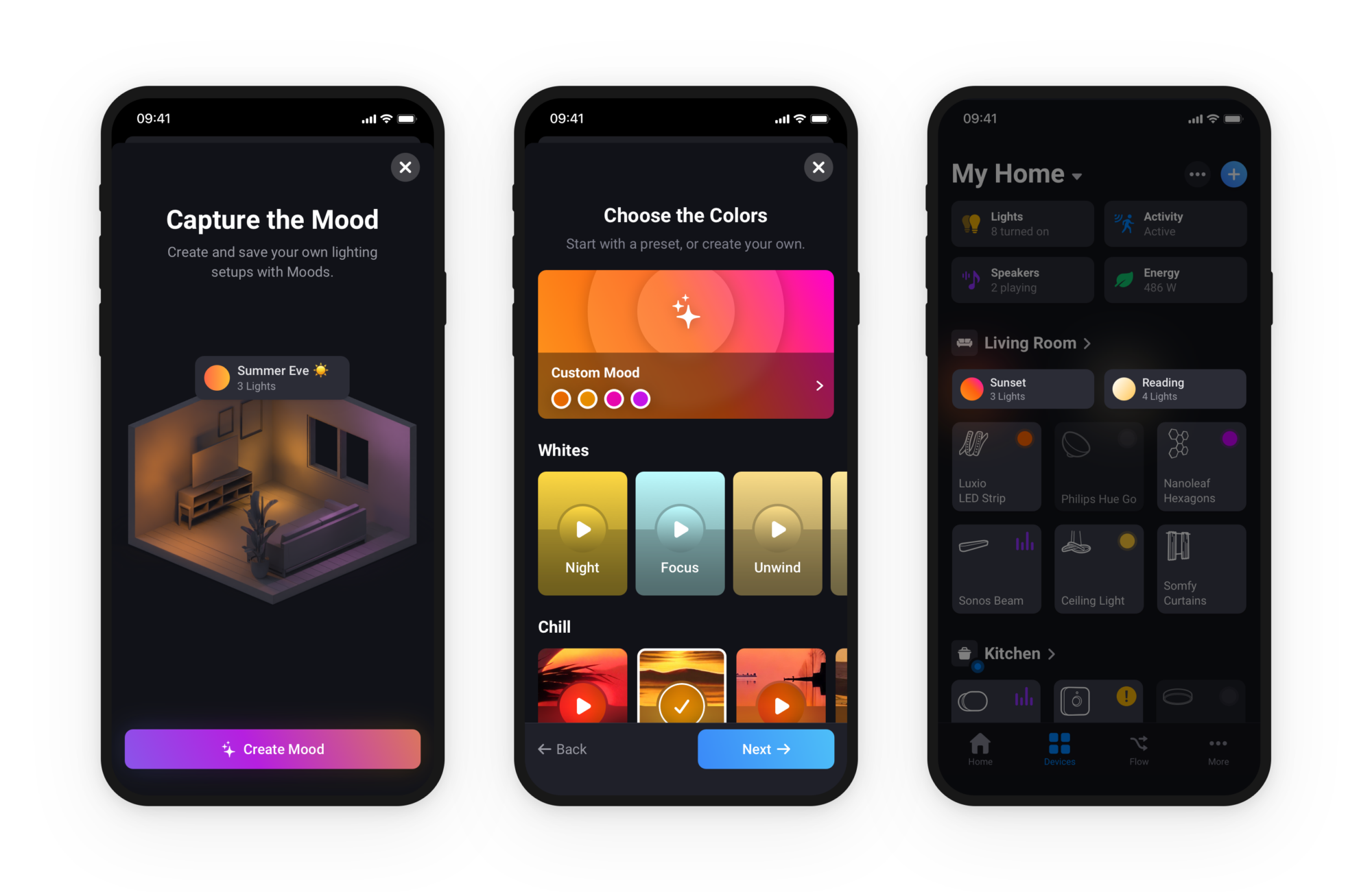 It is time to see your home in a whole new light. With Homey, you can go beyond simple control and create beautiful, comfortable, and stylish experiences with smart lighting. A few creative automations can completely change the way your home feels.